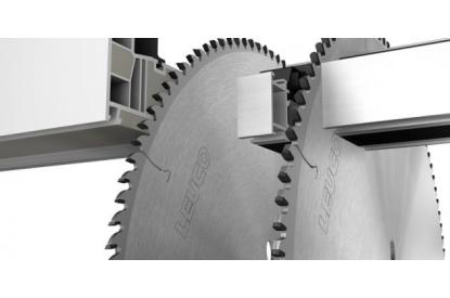 Малошумні дискові пили для високоякісного розкрою по довжині віконних профілів. Зліва: дискова пила LEUCO «g5-system» для розкрою профілів з ПВХ, а також пластикових профілів армованих волокнами. Справа: дискова пила LEUCO «g7-system» для розкрою профілів з алюмінію і кольорових металів.